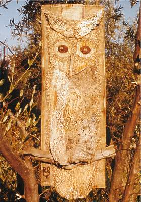 Mein UHU Nummer 30 besteht nur aus Opuntiengewebe, das auf einer Grundplatte aus Treibholz aufgebracht worden ist.