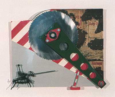 Materialbild: Maschinenteile, Ölkanister, Sägeblatt