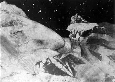 Kohle, Ruß und Bleistift auf Nessel