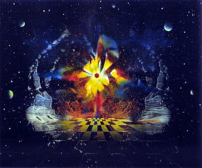 Mischtechnik auf Leinwand, lumineszierende Farbe