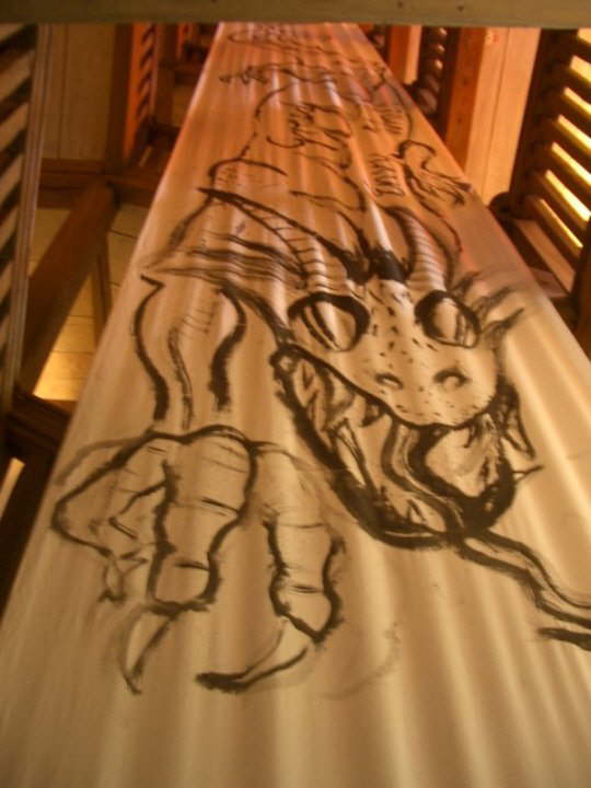 Leiv Donnans 12 Meter hoher Drache im Treppenhaus des "neuen" Rathauses