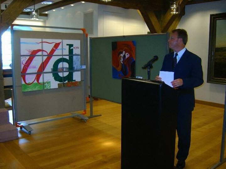 Der Bürgermeister der Stadt Osterode am Harz, Klaus Becker, begrüsst die Gäste bei der Ausstellungseröffnung