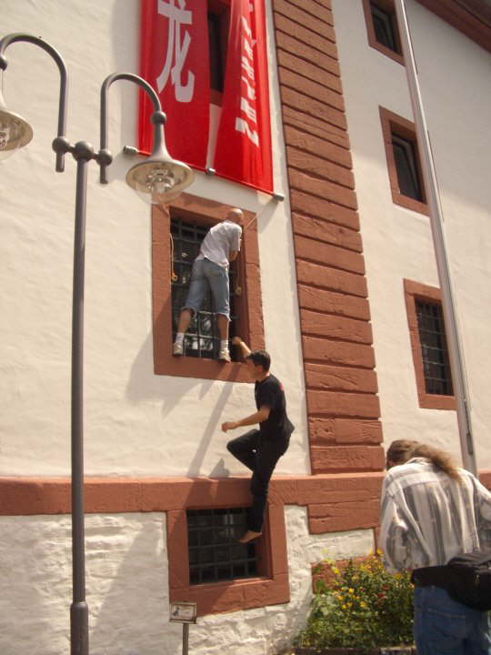 Claude Stockinger und Tobias Heckhausen als Fassagenkletterer