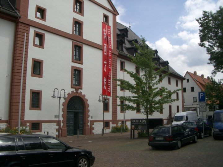 Das Ausstellungsbanner schmückt das "alte" Rathaus im historischen Harzkornmagazin