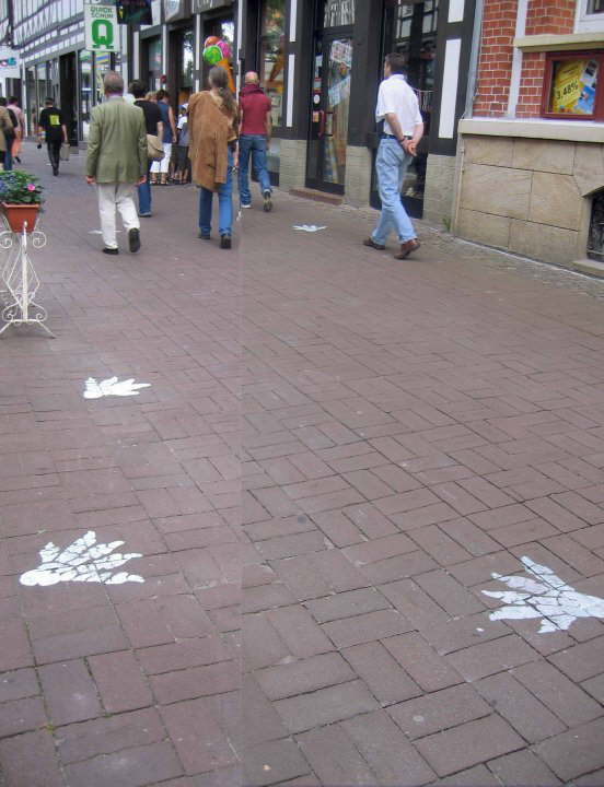 Drachenspuren zeigen den Weg zu den Geschäften, die am Drachen-Preisrätsel teilnehmen